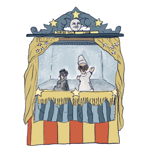 C’è odore di zucchero filato e caramelle gommose: entra in scena la marionetta di Pulcinella, dice che il tempo non passa mai quando serve e invece corre quando vuoi tenertelo, così quando incontra il Tempo gli fa una proposta.